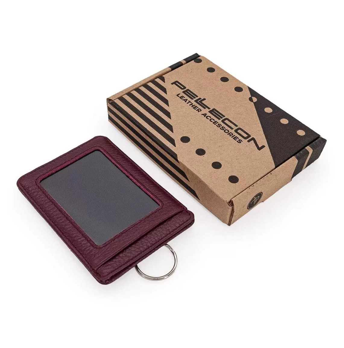 Натуральная кожа. Размер: (ШхВ) 10,8х7,8 см. Отделение для пропуска с прозрачной ПВХ вставкой, два потайных кармана, кольцо для цепочки или для ключей.
