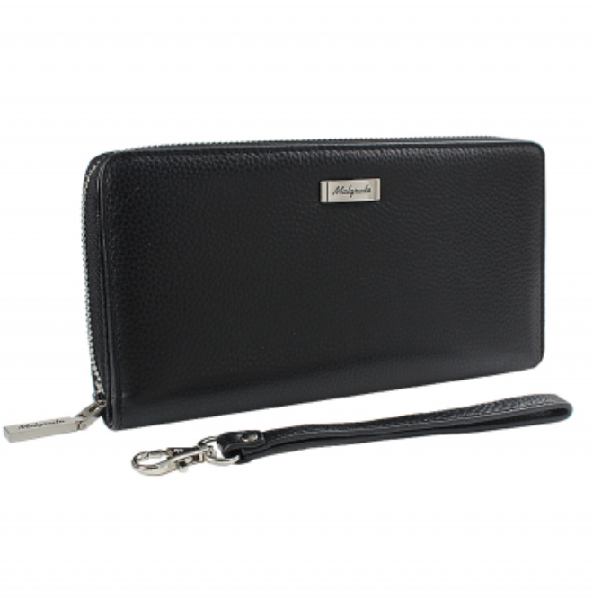 Мужское портмоне торговой марки Malgrado из натуральной кожи. В нём два основых отделения. В первом отделении на магнитных кнопках можно разместить шесть банковских и дисконтных карт с одной стороны и четыре с другой, также с каждой стороны есть по одному карману во всю длину портмоне. Ещё там предусмотрено одно большое прозрачное окошко для пропуска или фотографии. Второе отделение на металлической молнии. Внутри него шесть отделений, одно из которых на металлической молнии. Также там можно разместить по четыре банковские или дисконтные карты с каждой стороны.